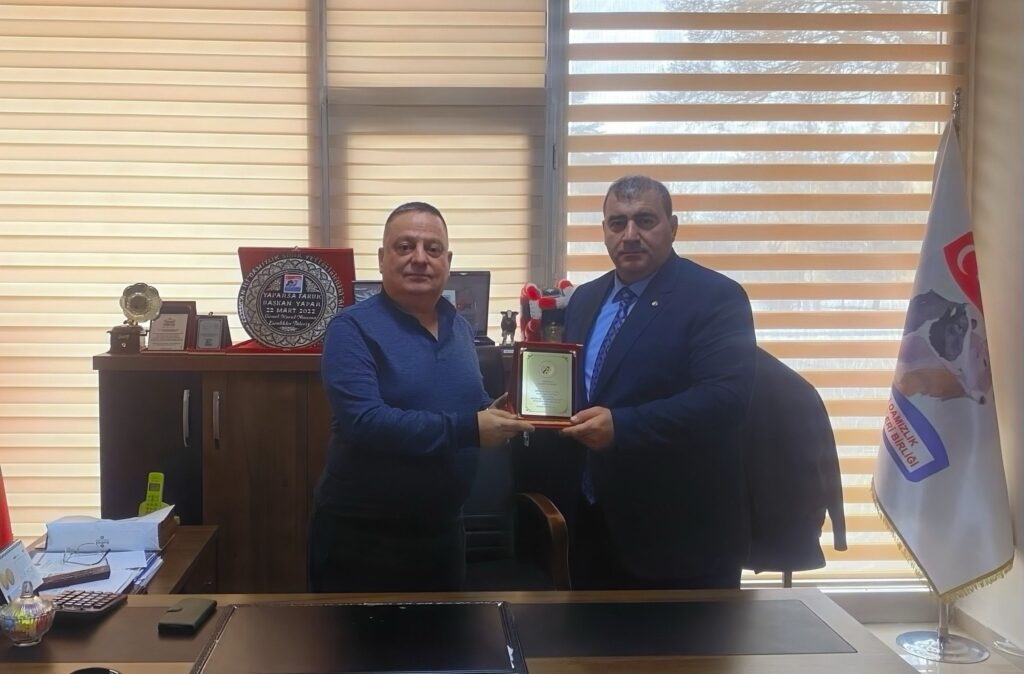 Gerçekleştirilen ziyarette, 2025 yılı içerisinde Erzincan İli Damızlık Sığır Yetiştiricileri Birliği olarak Erzincan Ticaret Borsası nezdinde en yüksek tescil işlem hacmine sahip üye olmamız dolayısıyla, Birlik Başkanımız Sayın Yaşar Faruk Günay’a plaket takdim edildi.